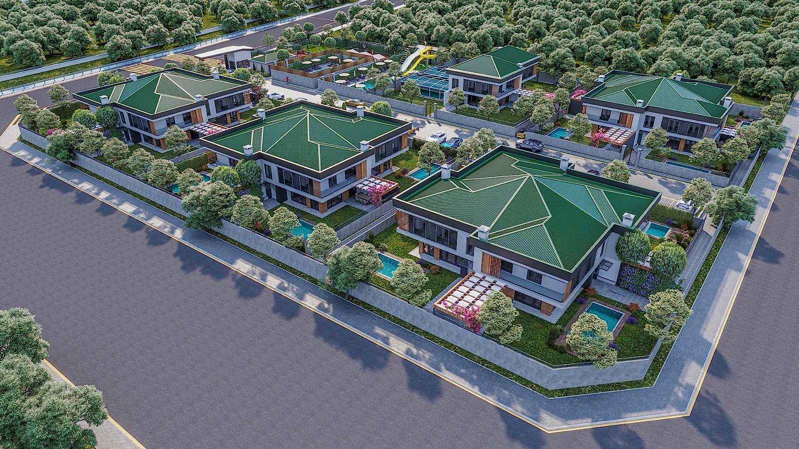 Doğayla uyumlu yeşil alan tasarımlarımız, otomatik sulama sistemleri ve özenle seçilmiş bitki dokusuyla villaların yaşam kalitesini yükselttik. Aynı zamanda yürüyüş yolları, dinlenme alanları ve fonksiyonel sert zemin uygulamalarıyla estetik ve konforu bir arada sunduk.